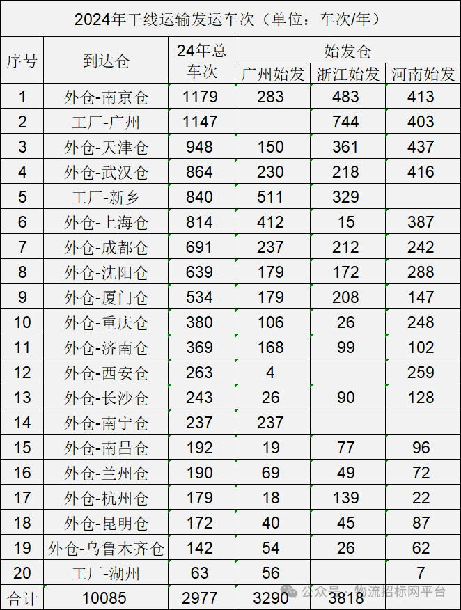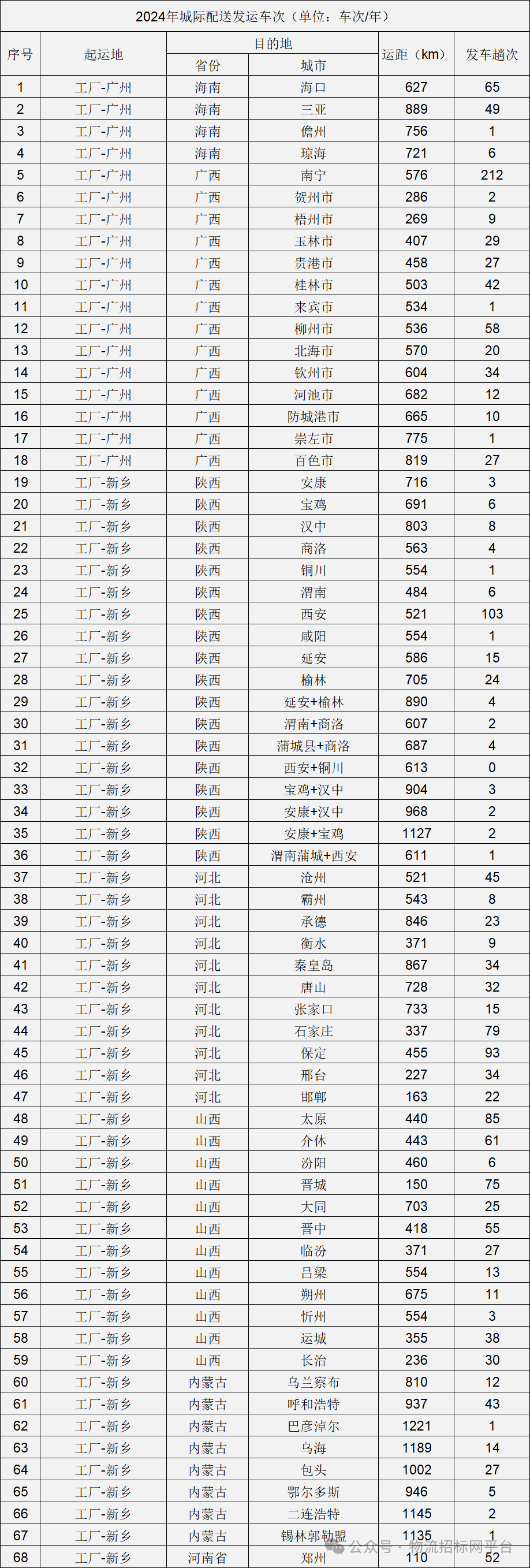 5、各标段的核心路线及发运车次(2024年度实际发运数据):